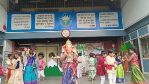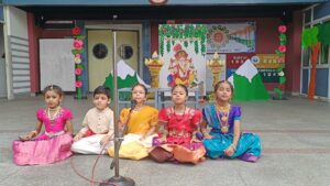 A graceful dance, a melodious bhajan, and a skit depicting the story of Lord Ganesha and his brother Shanmuka added devotion and joy to the celebration. The Headmistress encouraged students to celebrate festivals with devotion and eco-friendly practices. The assembly concluded with the joyful chant of “Ganapati Bappa Morya,” filling the campus with festive cheer.