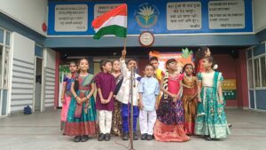 The students of Grade 1B conducted a special assembly to celebrate Independence Day with the theme “Mera Bharat Mahan.” Patriotic songs and energetic dances beautifully showcased India’s unity in diversity and reflected the students’ love and pride for the nation.